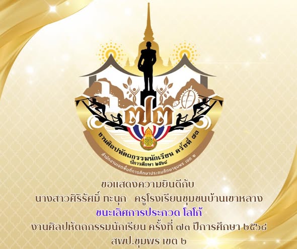 สำนักงานเขตพื้นที่การศึกษาประถมศึกษาชุมพร เขต 2  ขอแสดงความยินดีกับ นางสาวศิริรัศมิ์ ทะนุก ครูโรงเรียนชุมชนบ้านเขาหลาง ชนะเลิศการประกวด โลโก้ งานศิลปหัตถกรรมนักเรียน ครั้งที่ ๗๓ ปีการศึกษา ๒๕๖๘