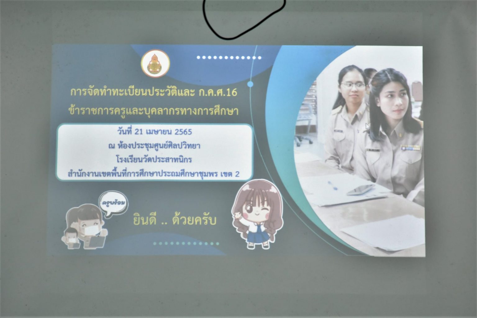 สำนักงานเขตพื้นที่การศึกษาประถมศึกษาชุมพร เขต 2 ส่งเสริ … อ่านเพิ่มเติม การส่งตัวข้าราชการครูและบุคลากรทางการศึกษาที่ได้รับการบรรจุและแต่งตั้งในตำแหน่งครูผู้ช่วย ประจำปี พ.ศ. 2564